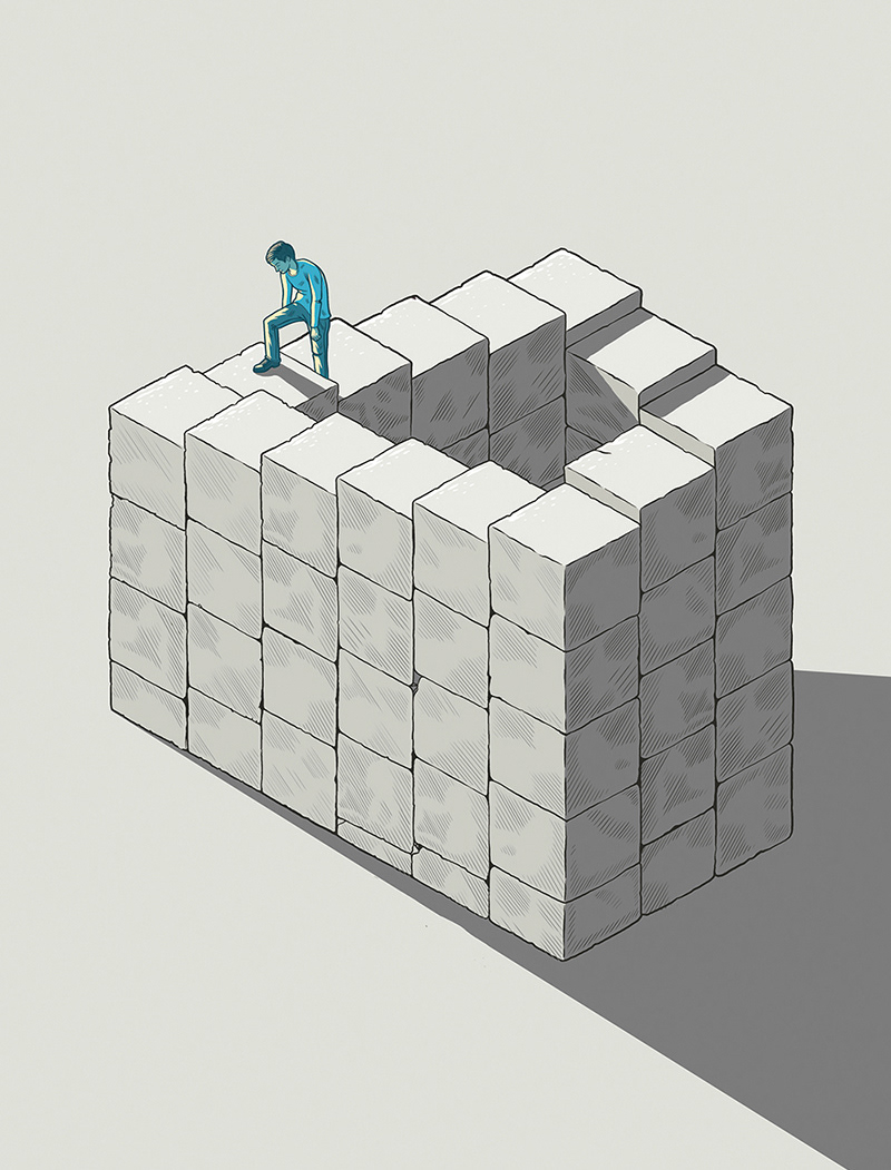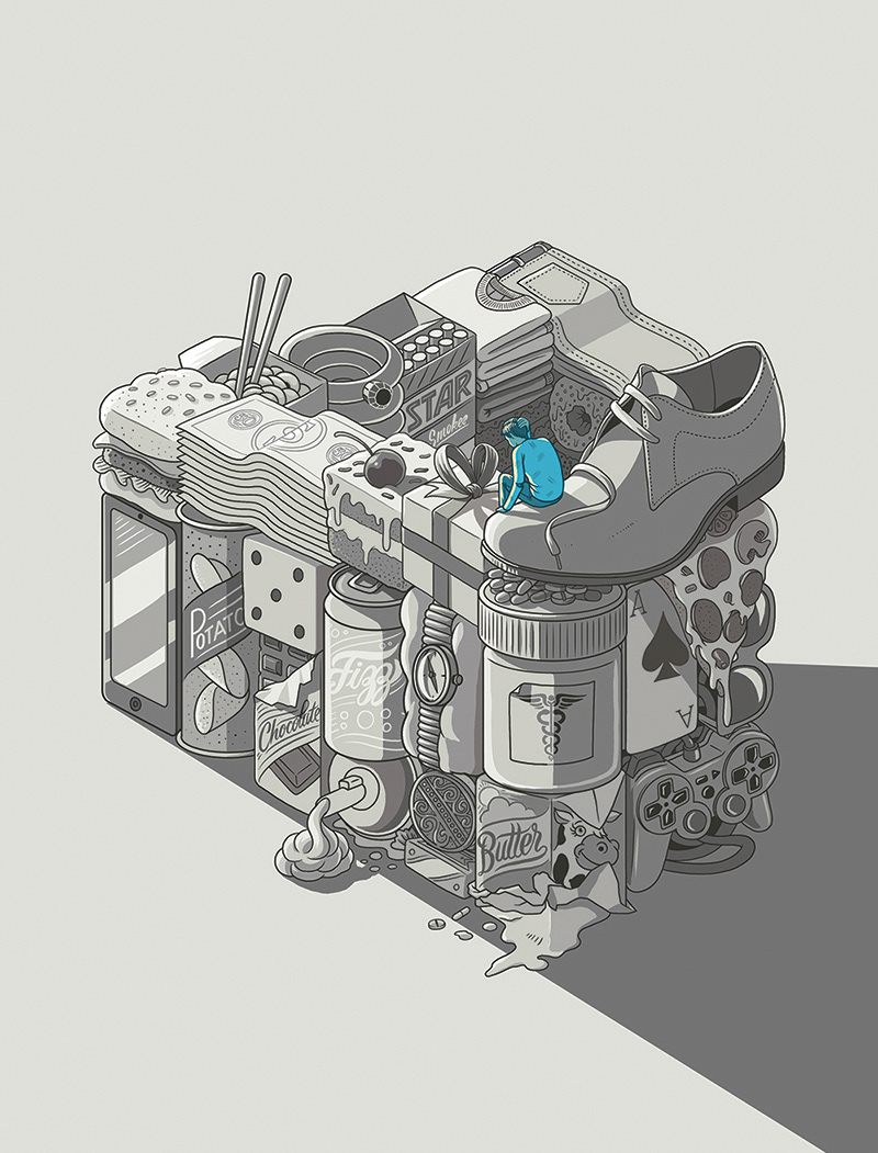 A series of hand rendered editorial illustrations dealing with shape and form with attention to depth and perspective.