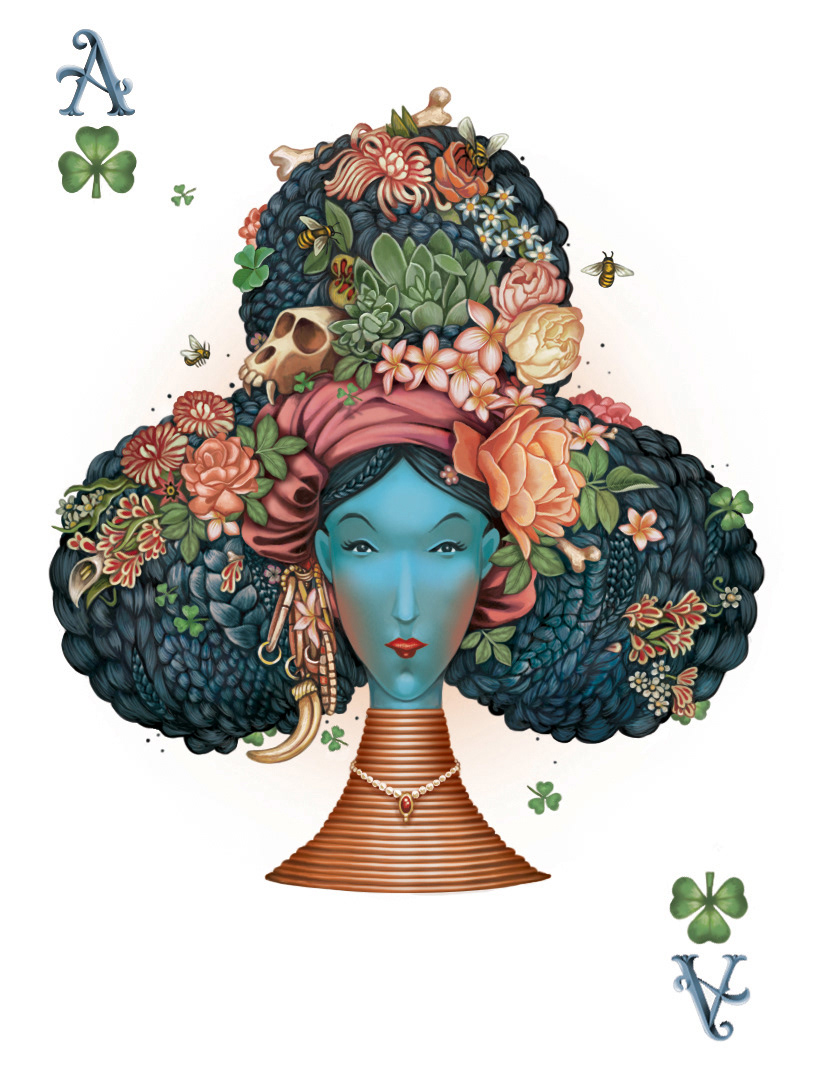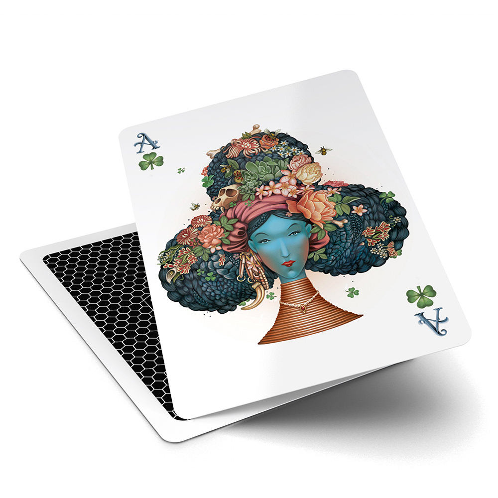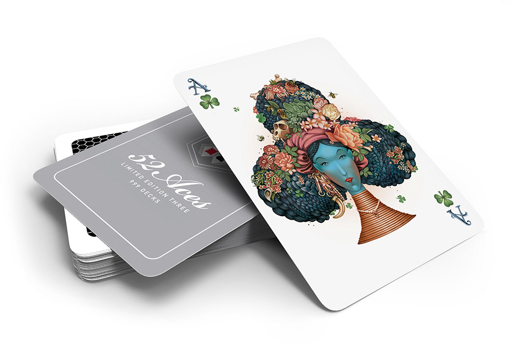 We were invited to create the Ace of Clubs for 52 Aces, a limited edition poker deck. Each of the 54 cards were created by different international artists.