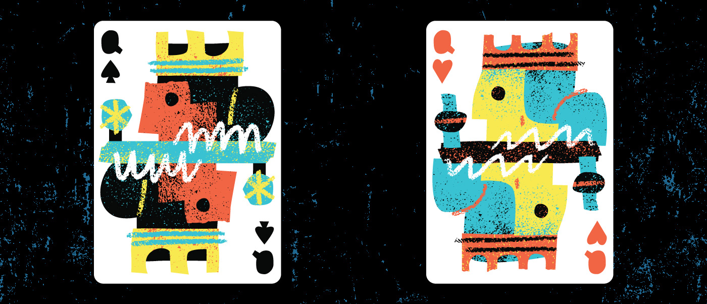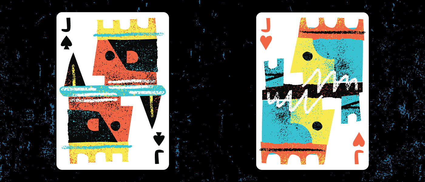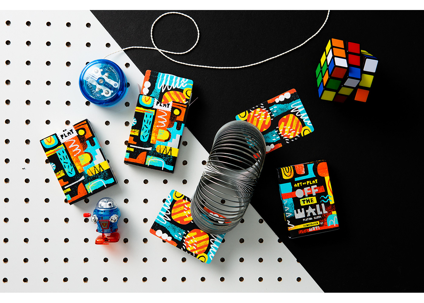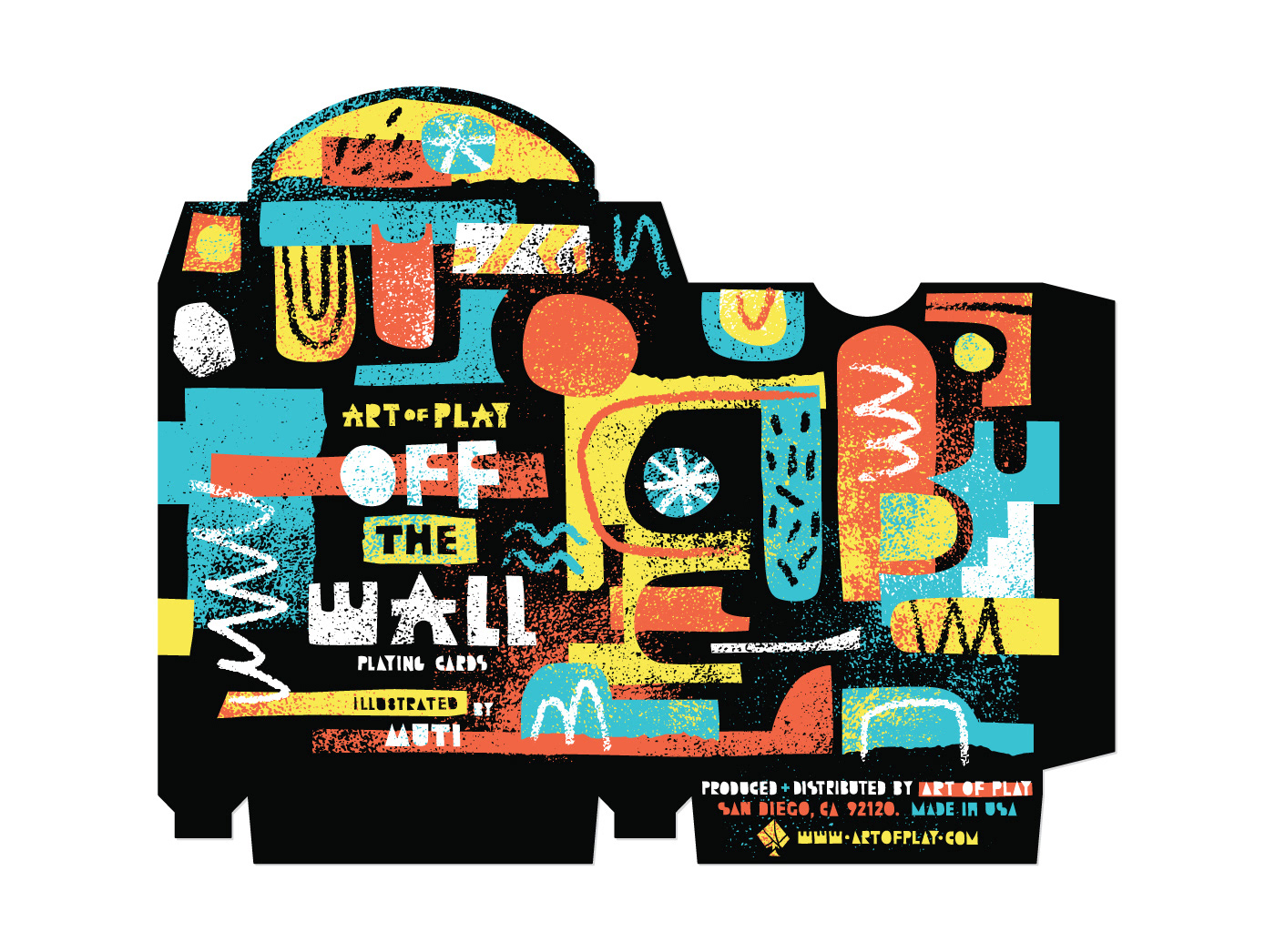 Our second custom playing card deck commissioned by Art of Play in San Diego. The abstract illustrated approach with bold, graphic shapes, punchy colors and grungy textures earned this deck the title "Off the Wall".