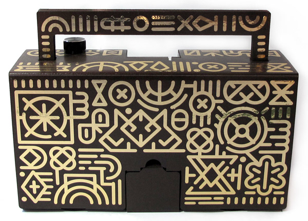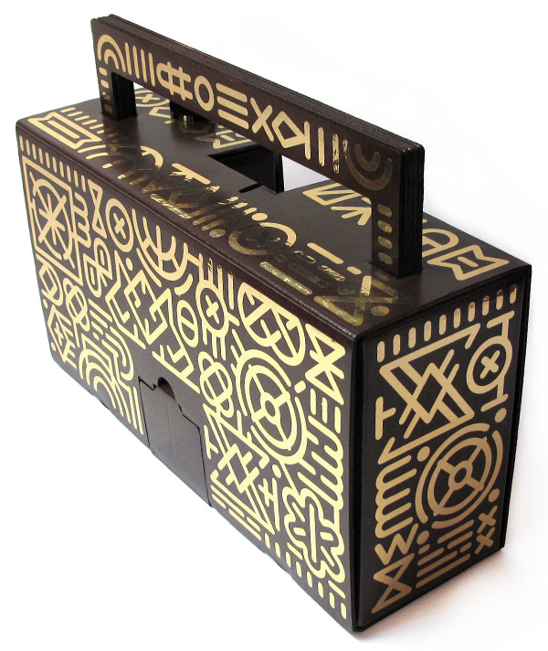 &Union approached us to customise a Berlin Boombox for their Cape Town craft beer and wine bar as part of a collaboration with local clothing store Loom. We created a geometric African-inspired pattern and applied it to the piece using spray paint and gold foil vinyl. A Berlin Boombox is a cardboard soundsystem for your iPhone, smartphone or MP3 player which was conceived by designer Axel Pfaender.