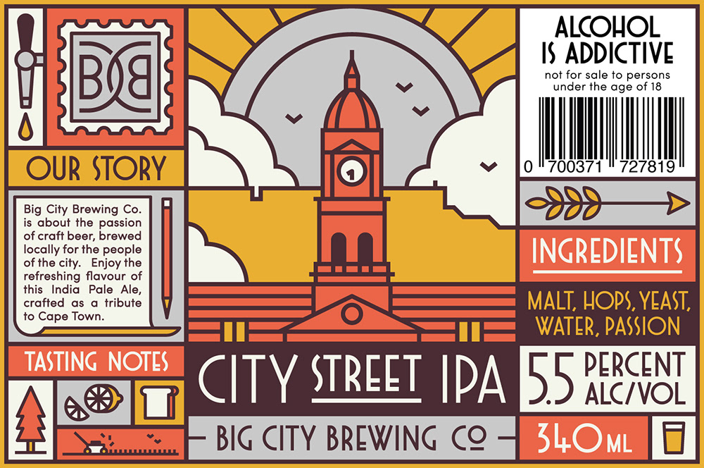 Big City Brewing Company is a South African craft beer producer based in Cape Town. We worked with them in creating their logo and designing two beer labels, an IPA and Low Carbohydrate brew.