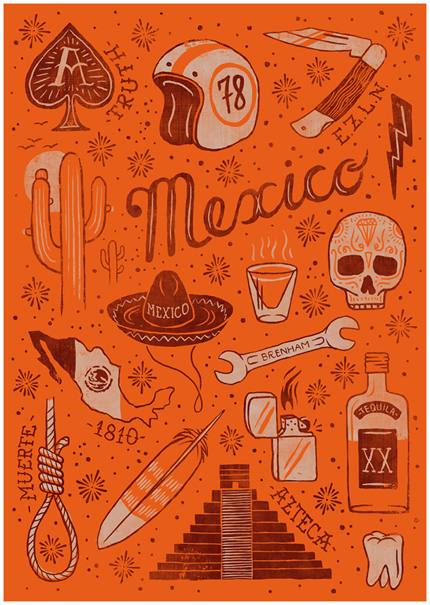 We worked with online clothing retailer Stylemology to create a series of designs and illustrations for Brenham, their motorcycle-inspired menswear brand. This range was loosely inspired by a retro-styled journey through mexico.