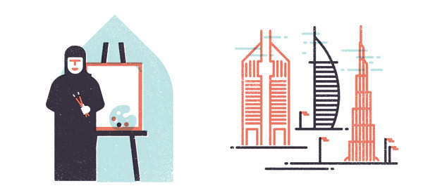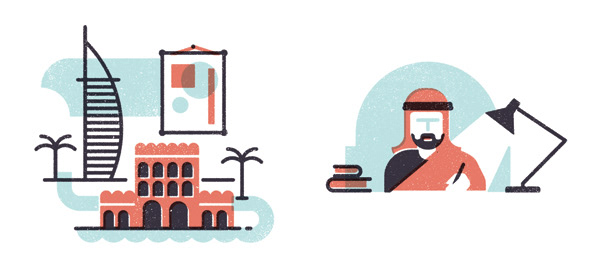 Series of editorial illustrations themed around arts and culture in the Middle East. Created for Brownbook, an urban lifestyle guide for that region.