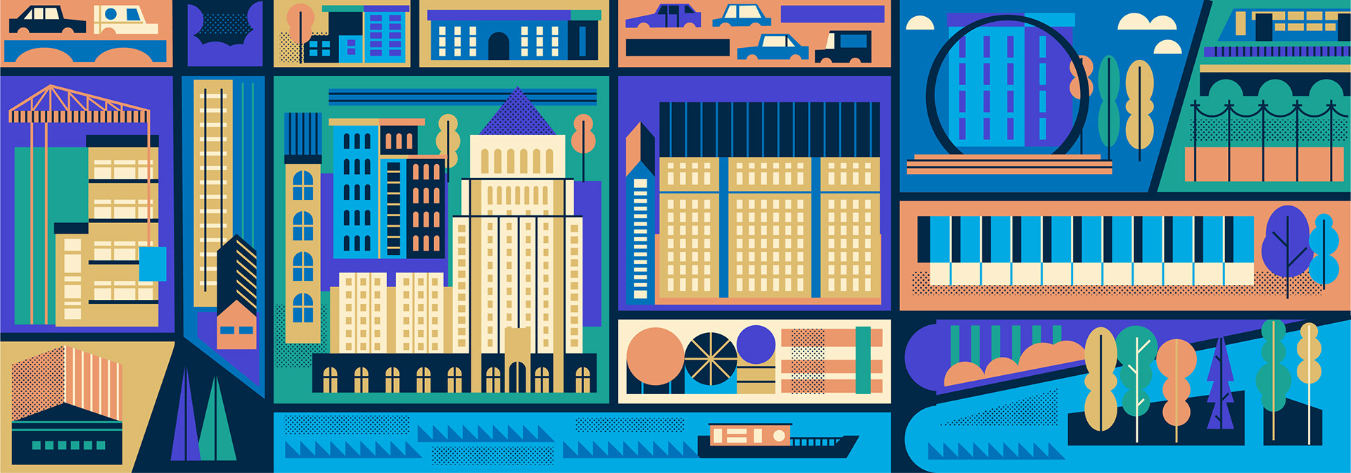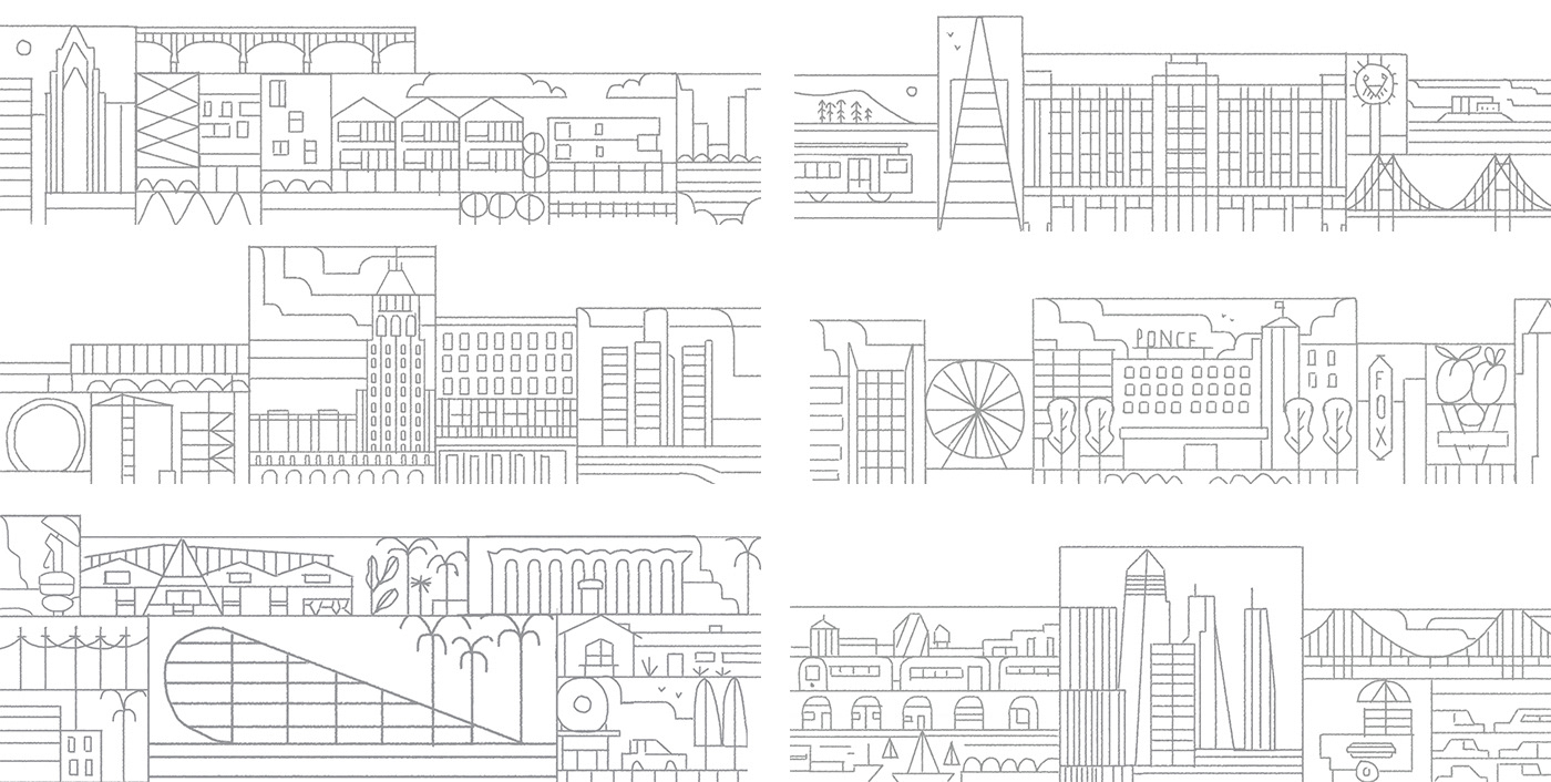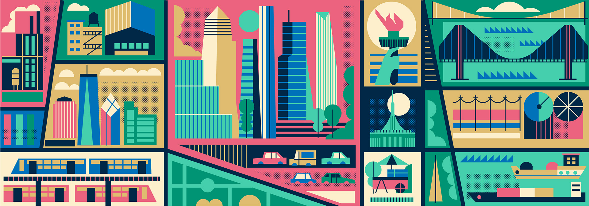 A series of illustrations commissioned by American real-estate network Curbed, for an article on the development of various neighbourhoods in the US.