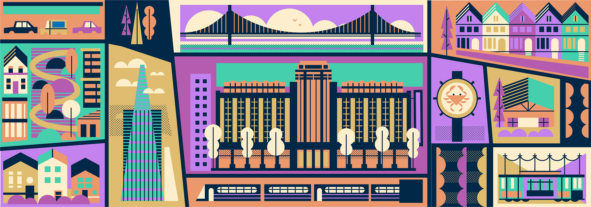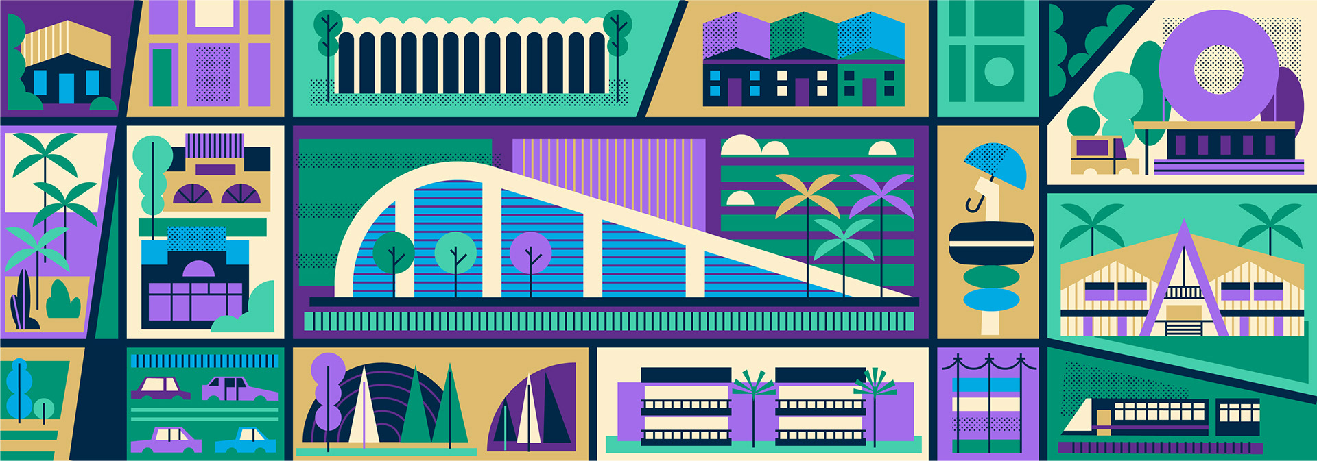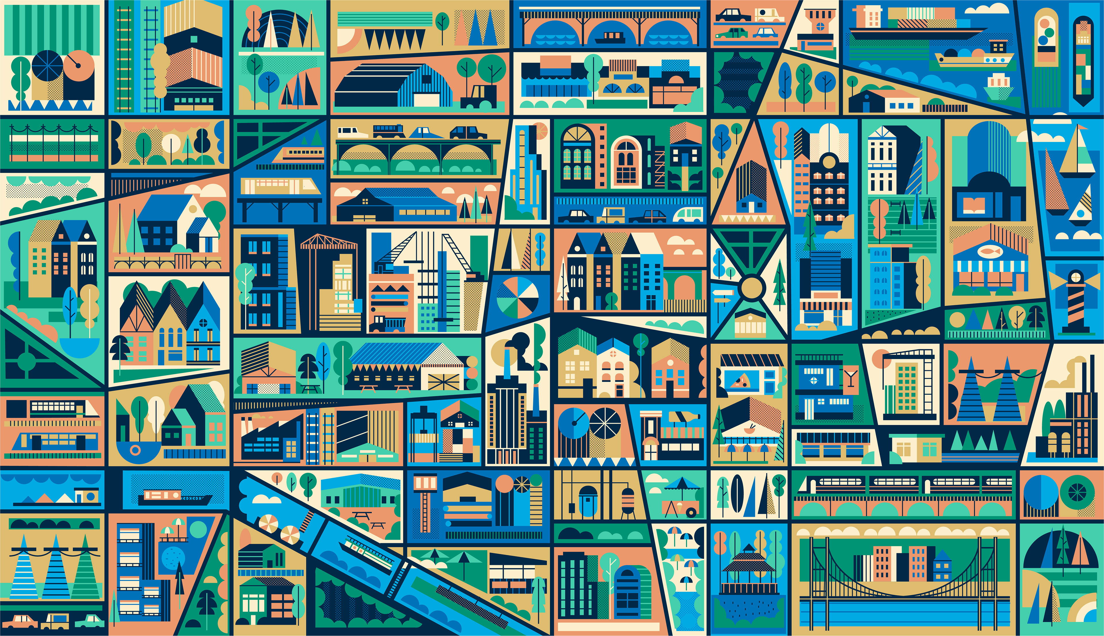 A series of illustrations commissioned by American real-estate network Curbed, for an article on the development of various neighbourhoods in the US.