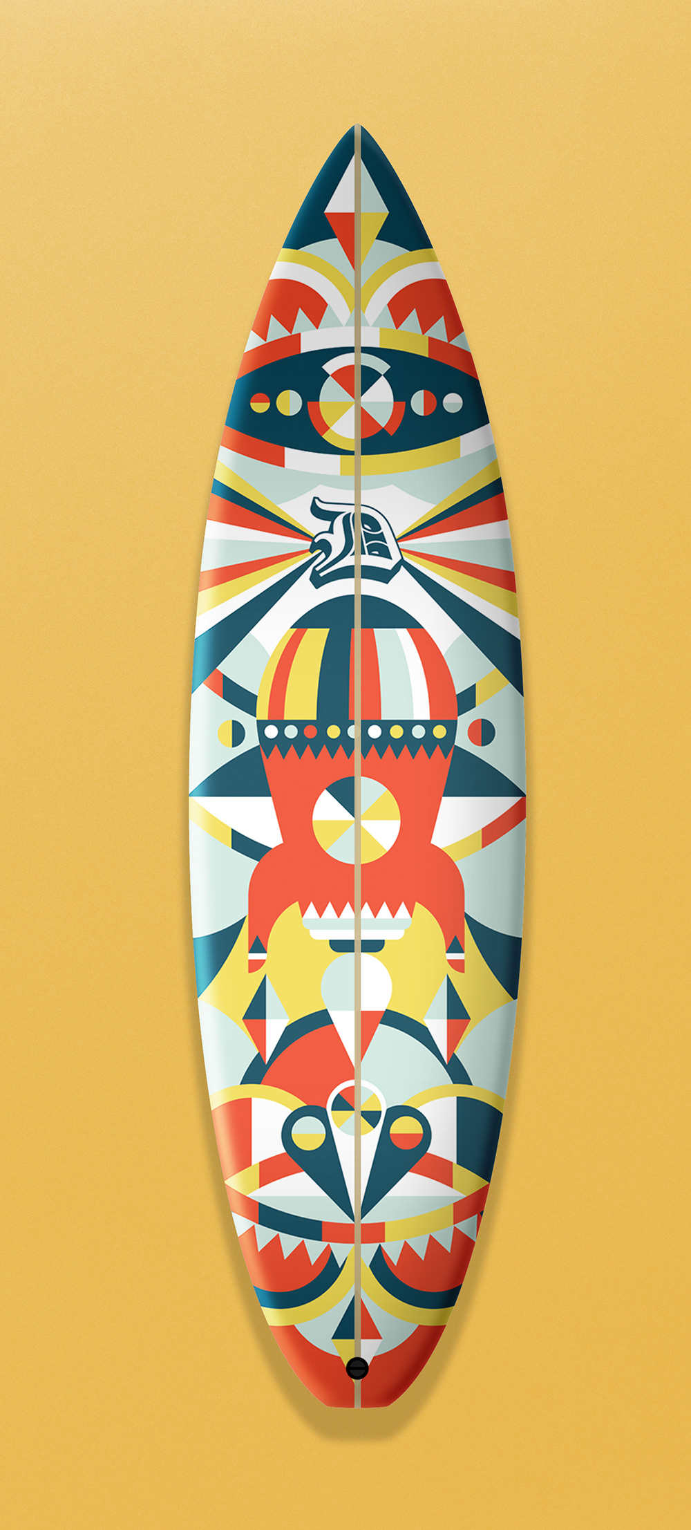We created a custom design for Cape Town surfboard manufacturer Dutchie. In the past surfboards were hand painted but through the use of new techniques we were able to have our vector artwork reproduced perfectly onto the board.