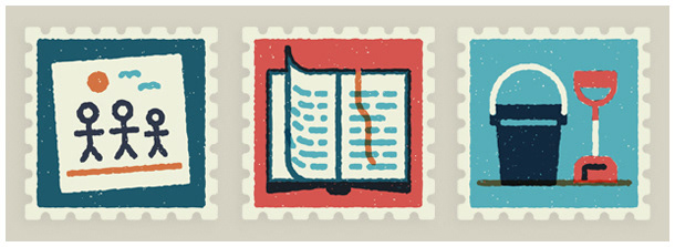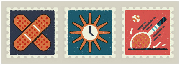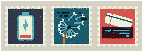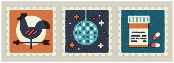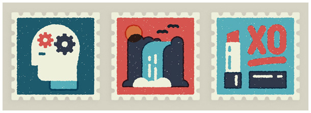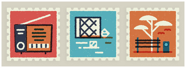 We illustrated a set of icons for Everyday Stamps, a private photo journal app that lets you collect your thoughts and mark the moments of your everyday life. Each stamp represents a concept or mood which the user then adds to their photo.