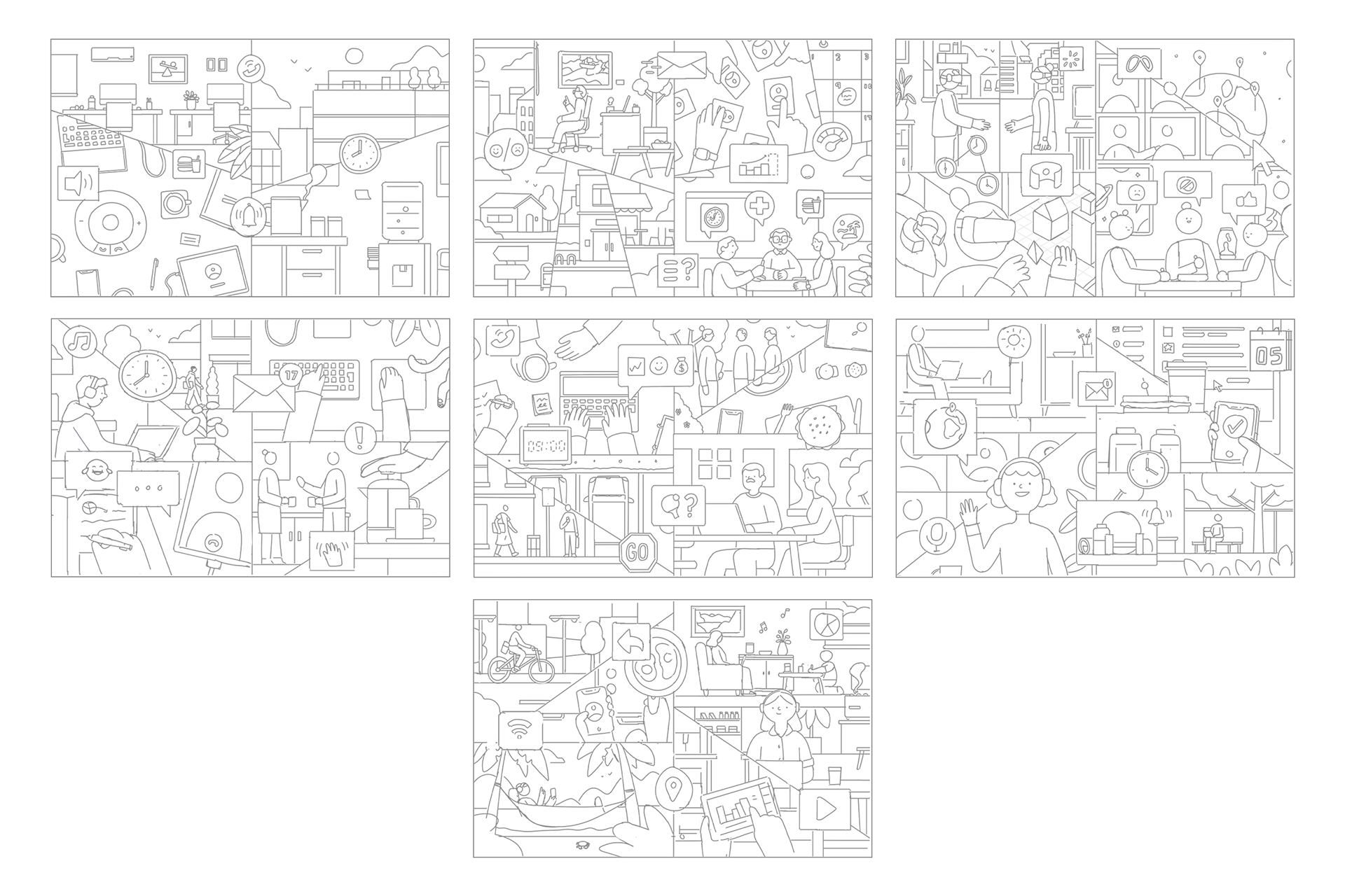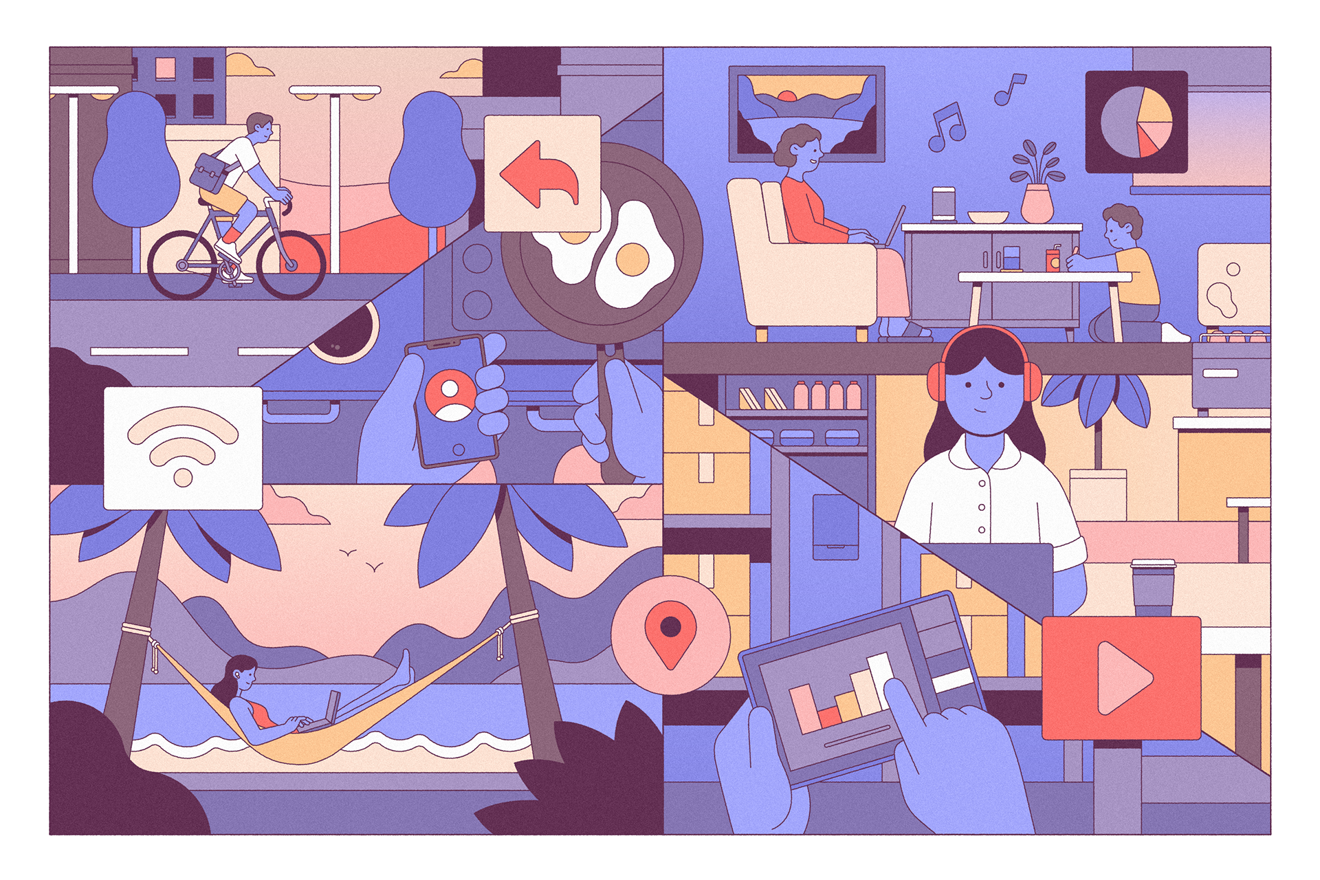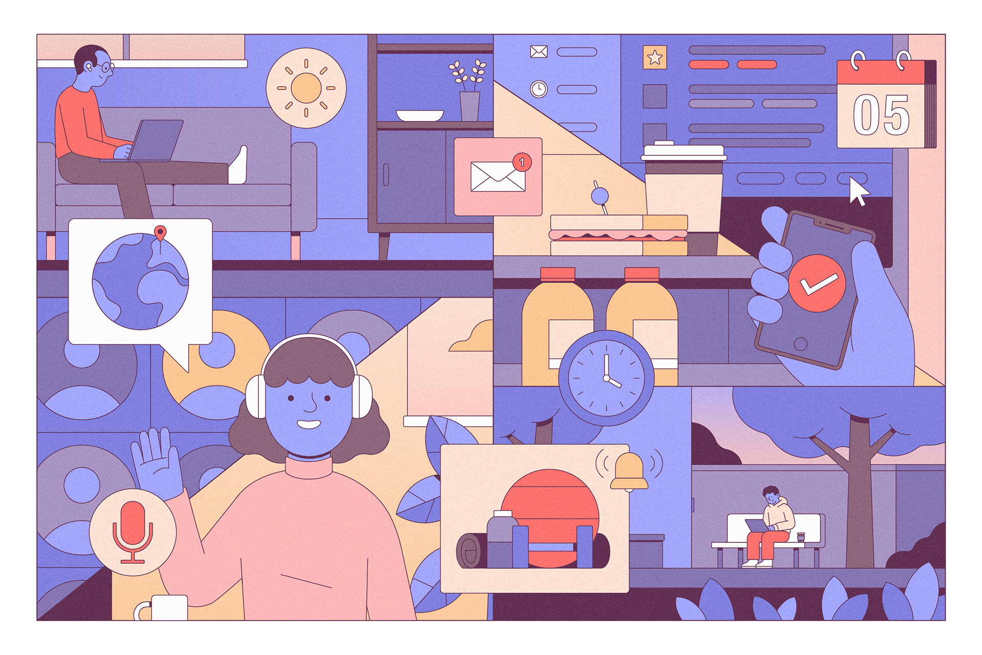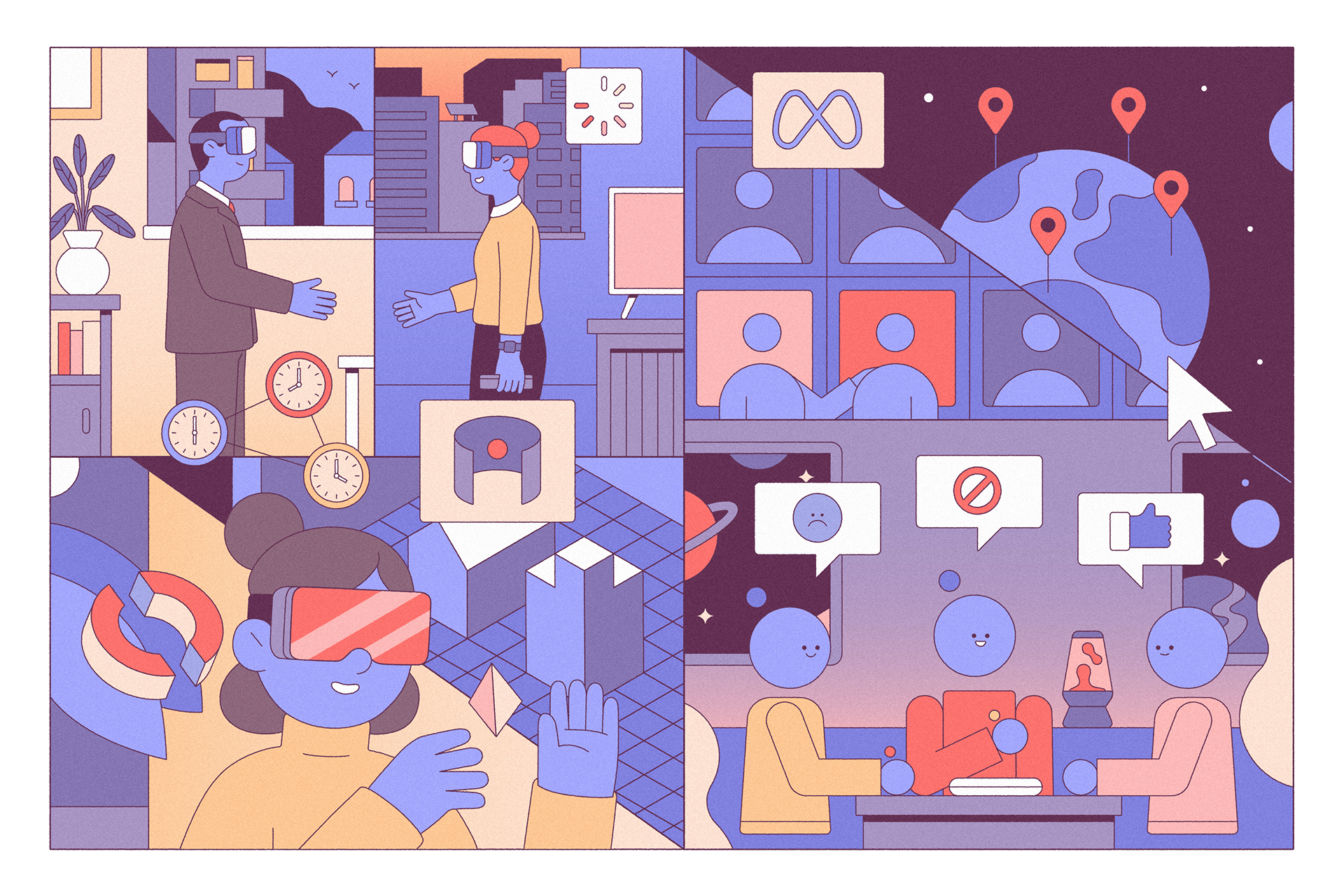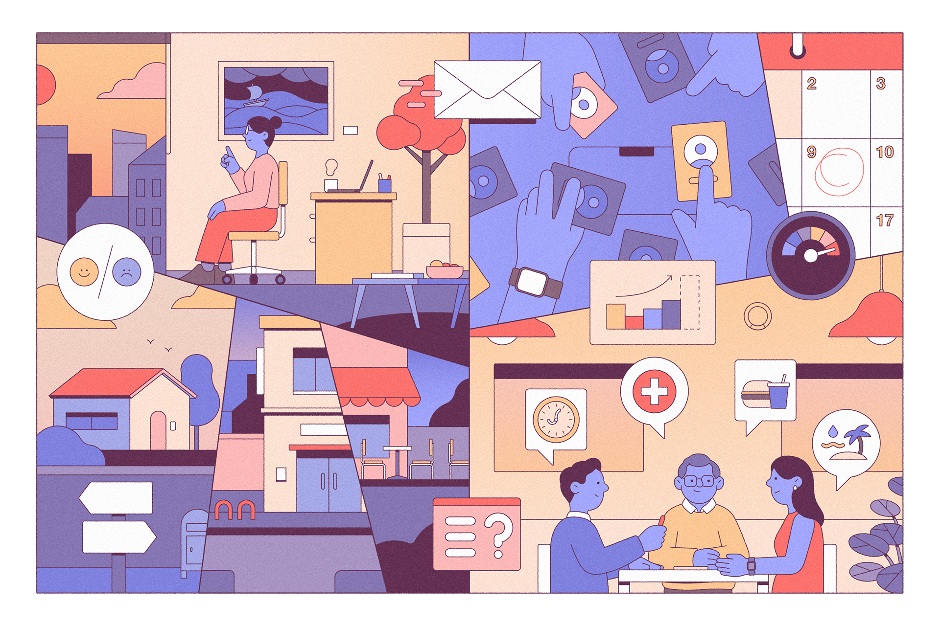 How HR executives are developing return-to-office strategies. A series of editorial illustrations for Fortune Magazine.