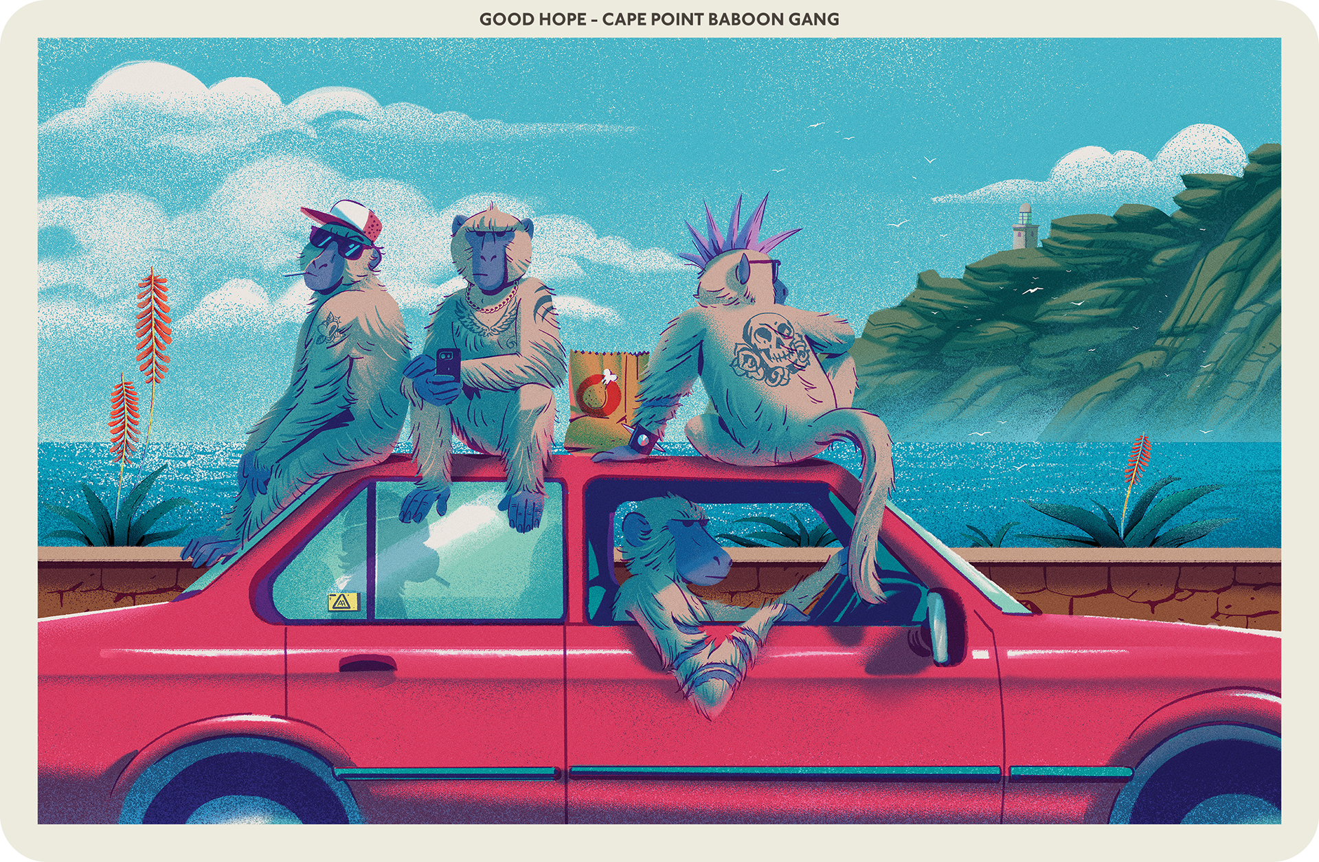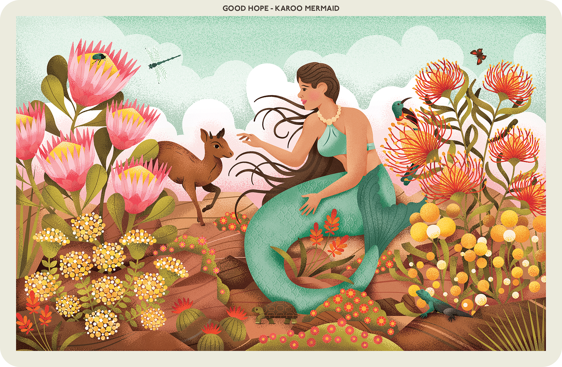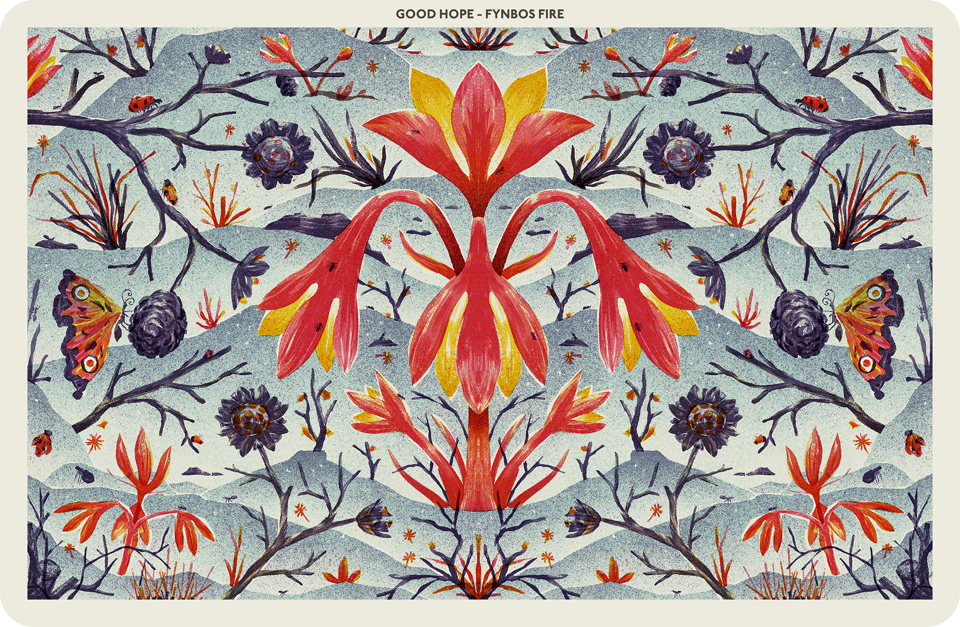 A series of illustrations drawing inspiration from the Cape of Good Hope’s flora, fauna, history and legends. Created for an exhibition commissioned by the Akron Art Museum, Ohio, USA.