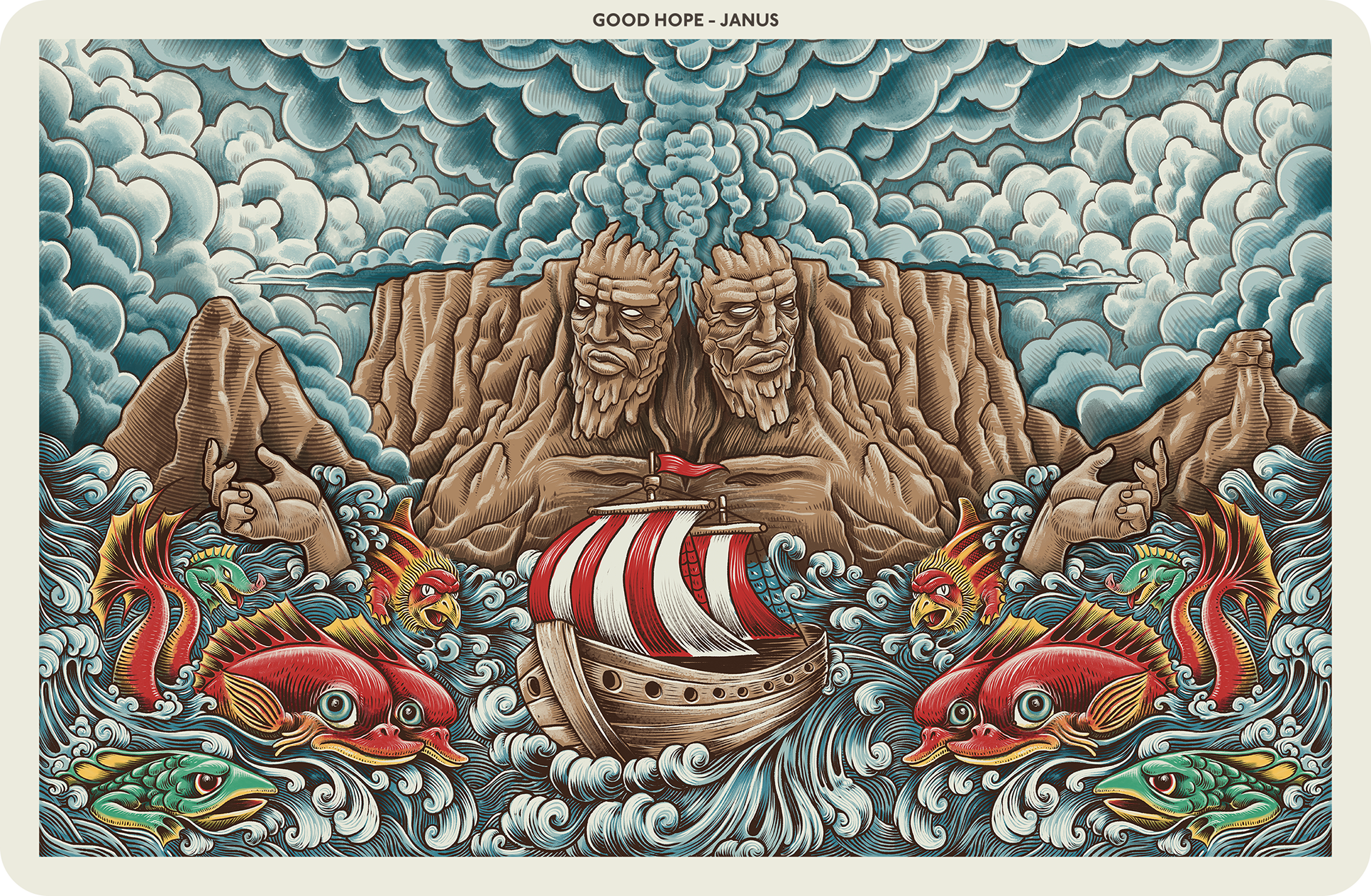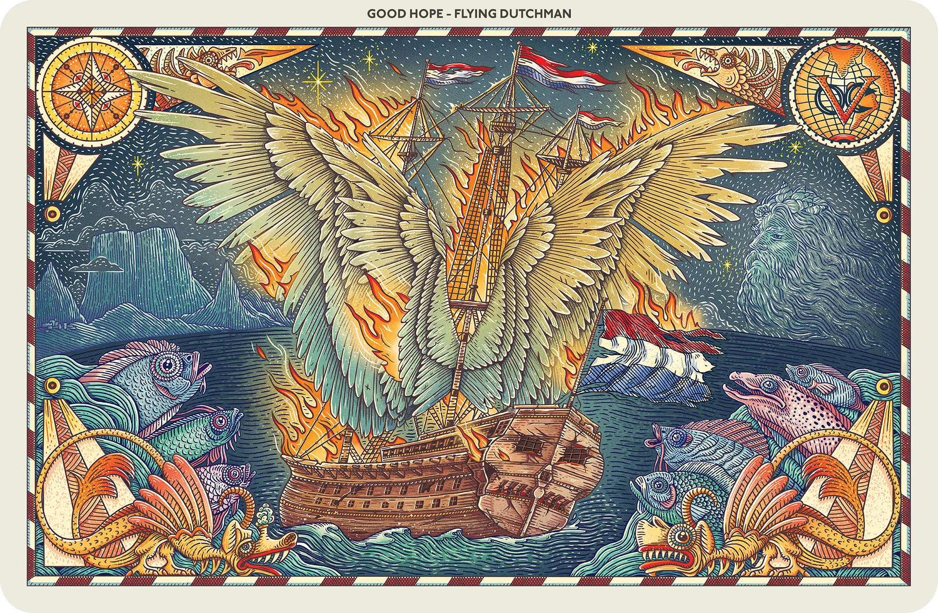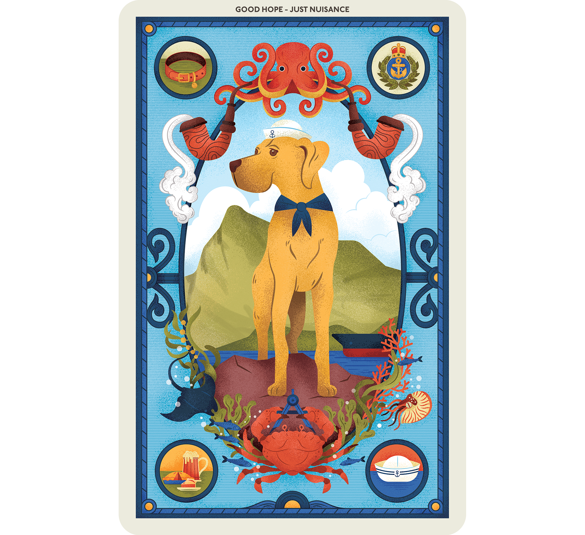 A series of illustrations drawing inspiration from the Cape of Good Hope’s flora, fauna, history and legends. Created for an exhibition commissioned by the Akron Art Museum, Ohio, USA.