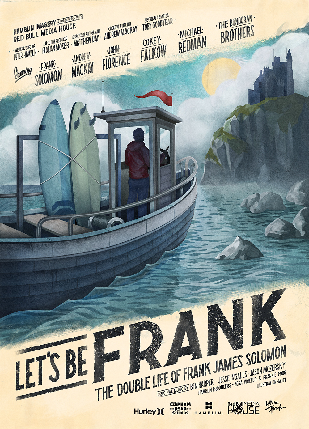 We worked with Hamblin Imagery and Red Bull Media House on the posters and animation for surf film 'Let's Be Frank'.