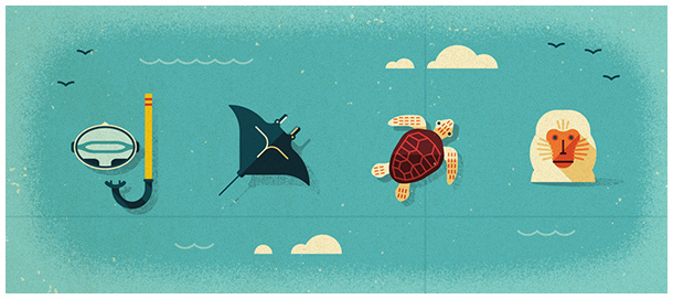 Beach sports, manta ray, loggerhead turtle, macaque in hot springs