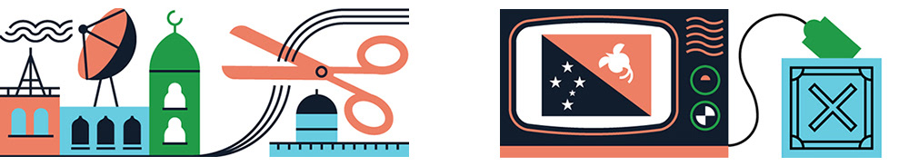 AME: Bahrain shuts down Al Arab TV, Oceania: Papua New Guinea's EMTV is bought by government. Observers fear it may be used to influence elections.