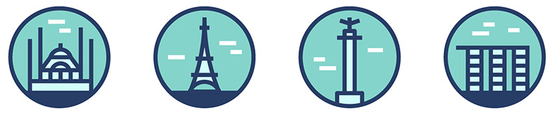 Hagia Sophia, Eiffel Tower, Angel of Independence, Marina Bay Sands