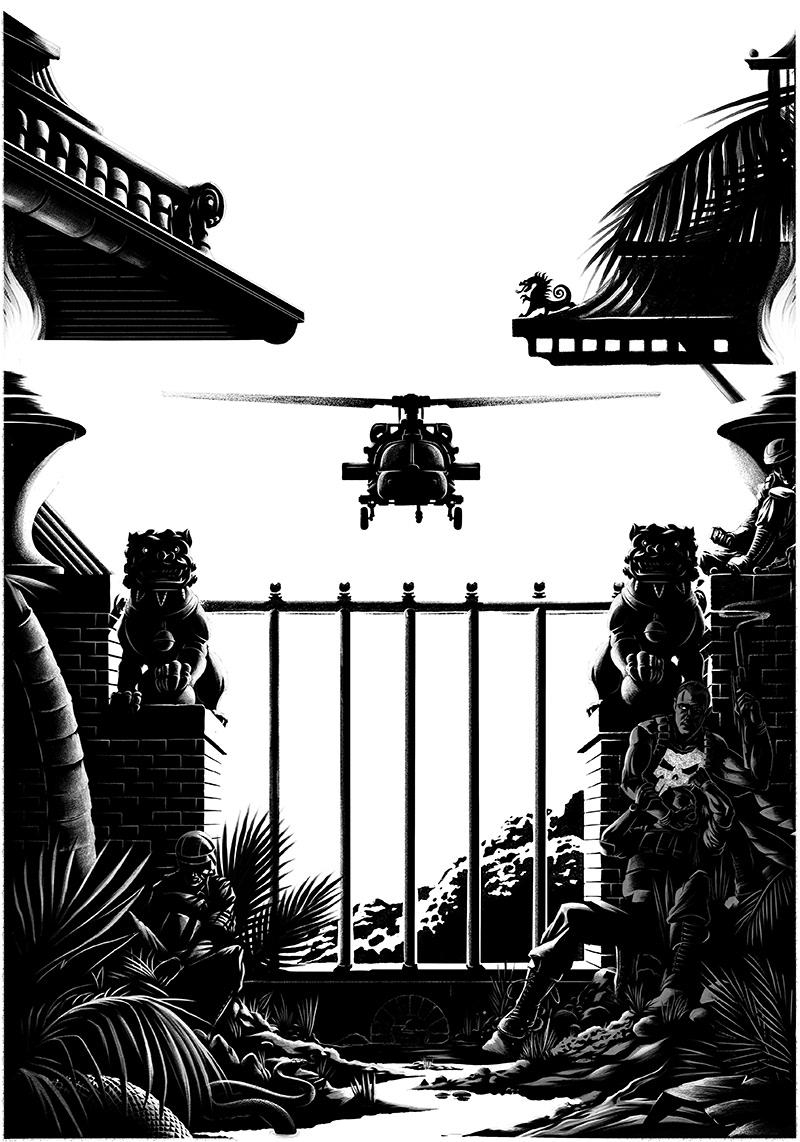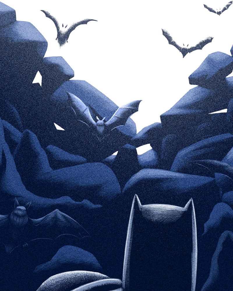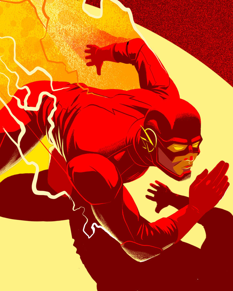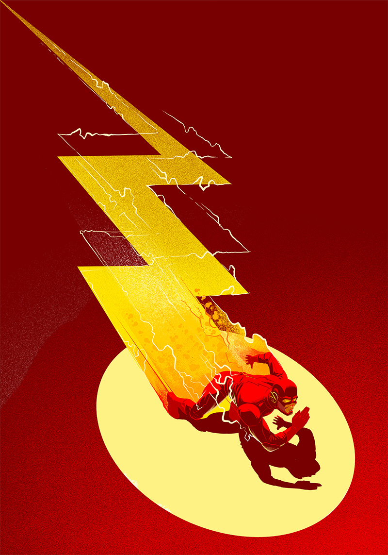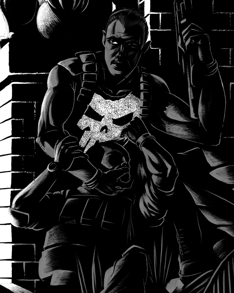 We illustrated a series of posters portraying three well known comic book characters namely Batman, The Flash and The Punisher. We incorporated their emblems into each composition as a hidden image.