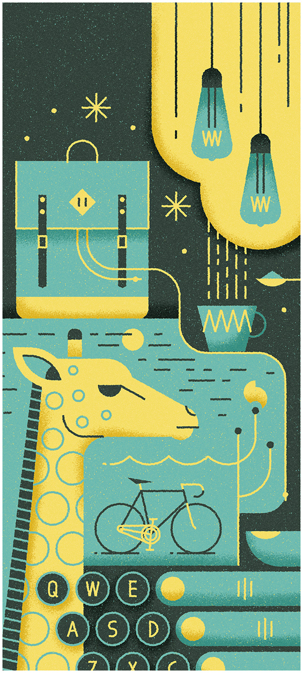 We were approached by Studio Büro in France to illustrate three of Petit Bain's monthly programme covers. Petit Bain is a floating structure which functions as a restaurant, club and venue. It was conceptualised by an architectural collective and is docked on the river Seine in Paris. The brief was to create an intriguing, surreal illustration to capture the curiosity of the viewer.
