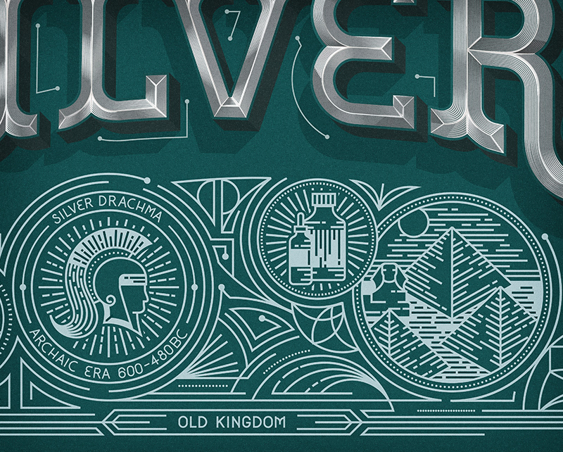 We created a series of typographic illustrations inspired by the rich minerals mined on our planet. With custom lettering and iconography we touched on some of the history and wealth that these precious metals have created.