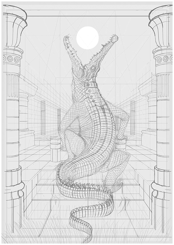 We took part in a group exhibition for the Psych Night music and art event held in Cape Town. We chose to illustrate a scene depicting Sobek, an ancient Egyptian deity.
