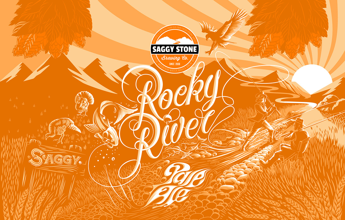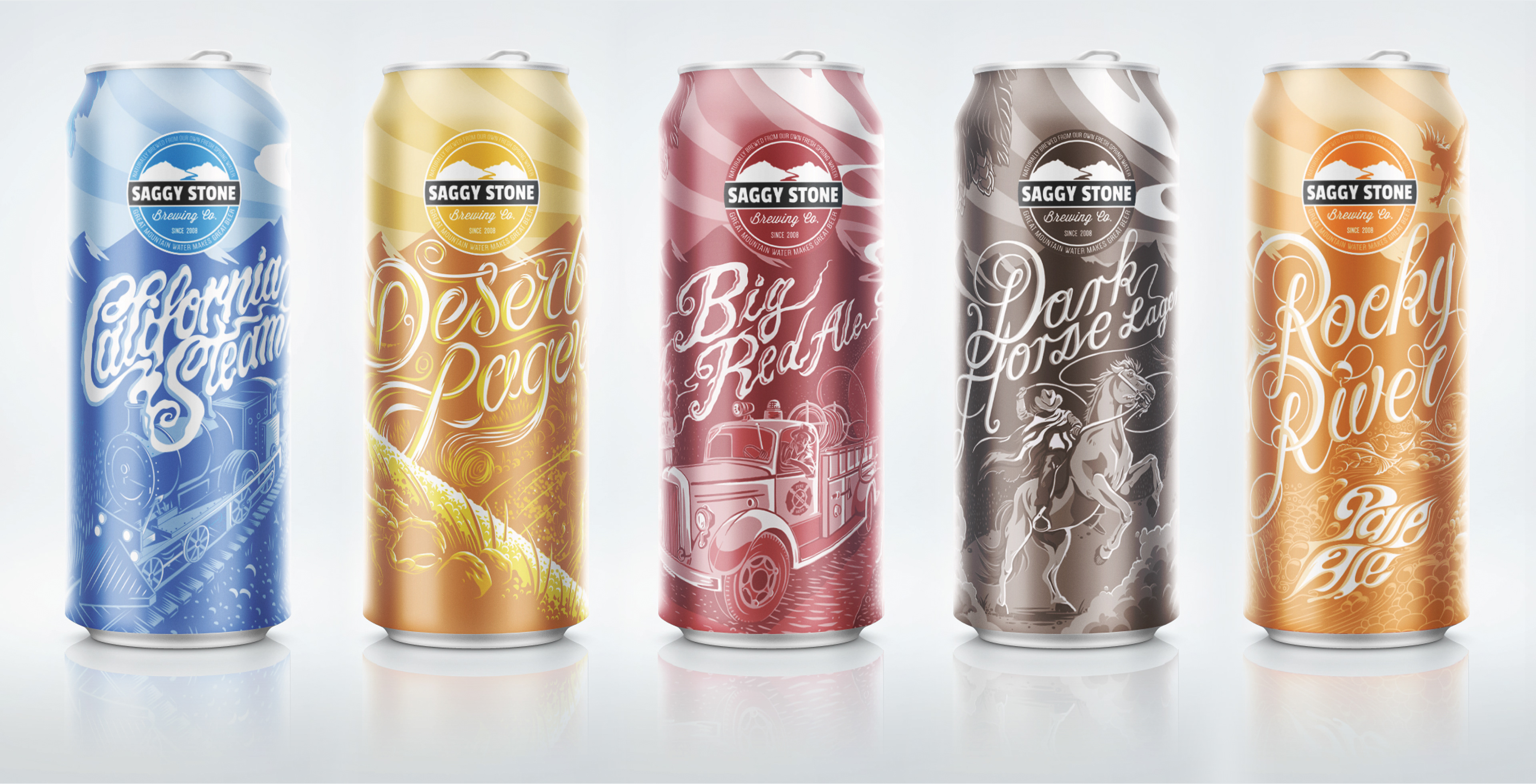 We created the illustrations and lettering for Saggy Stone's range of beer cans. The artworks depict the brewery's setting in Robertson, with each variant portraying a different narrative.
