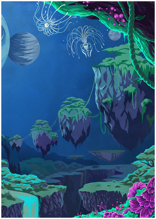 We worked with FoxP2 to create a series of posters for Ster-Kinekor Theaters, South Africa's leading cinema house. We illustrated posters for four well-known movies, namely King Kong, The Shining, Avatar and Lord of the Rings. The concept was to illustrate locations found only in the respective movies and portray them as destinations in a classic, mid-century travel poster style.