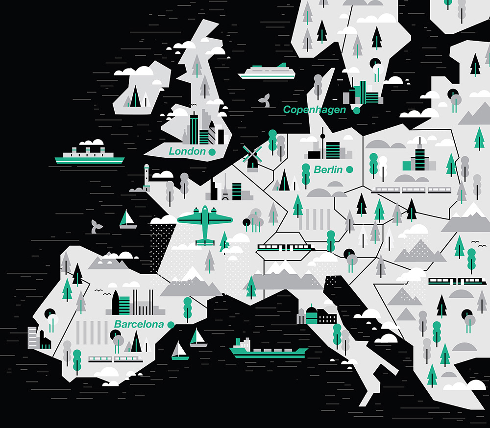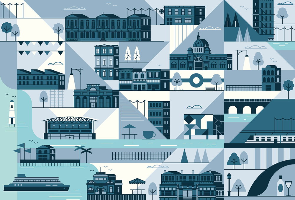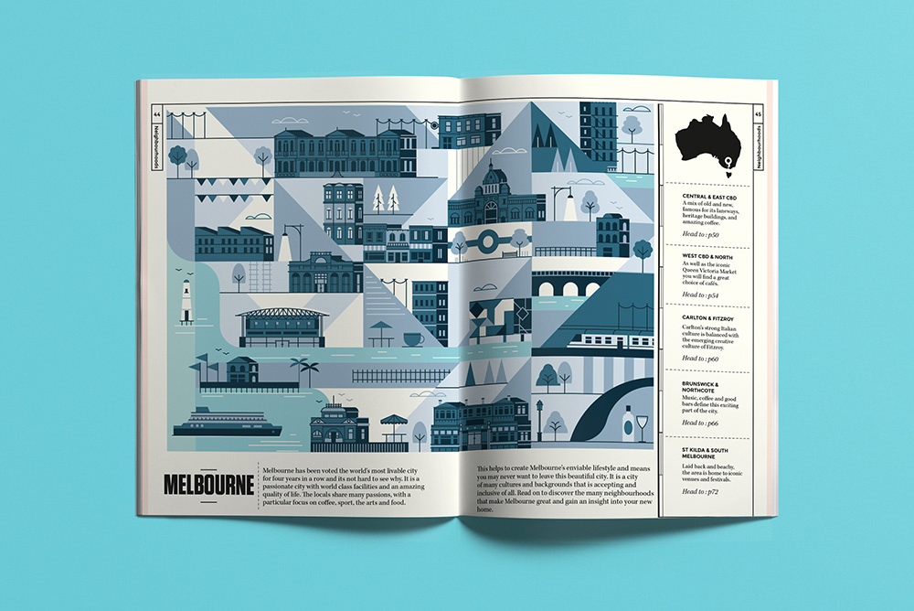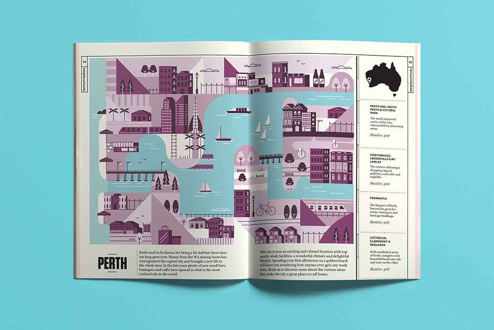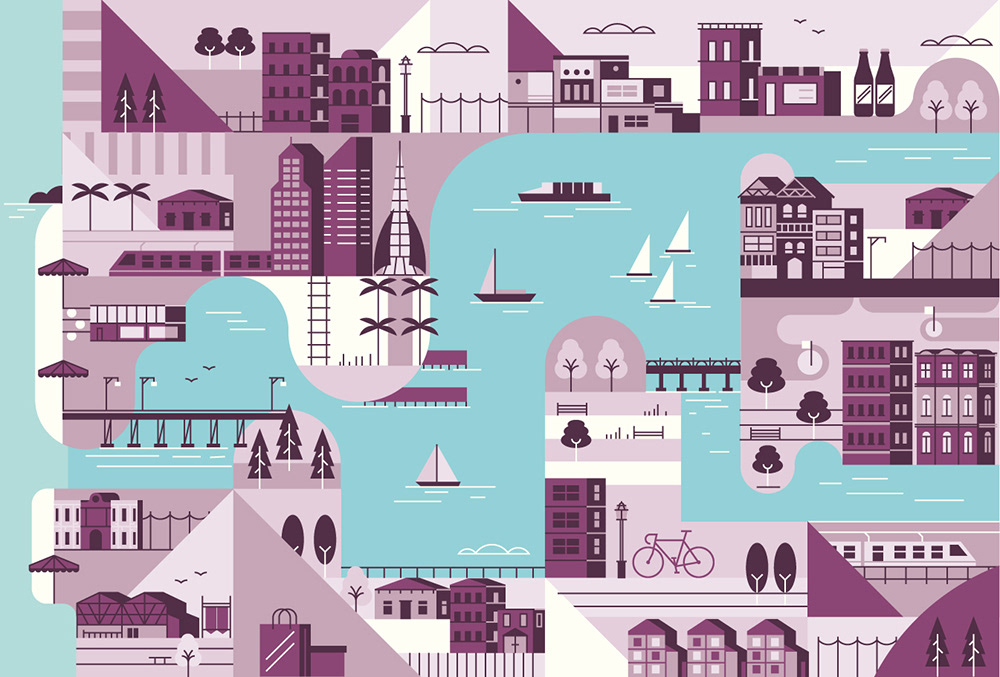 Explore the corners of the earth with our latest selection of editorial maps. Working in a flat, graphic style we depicted various cities and countries from around the world, commissioned by a variety of clients.