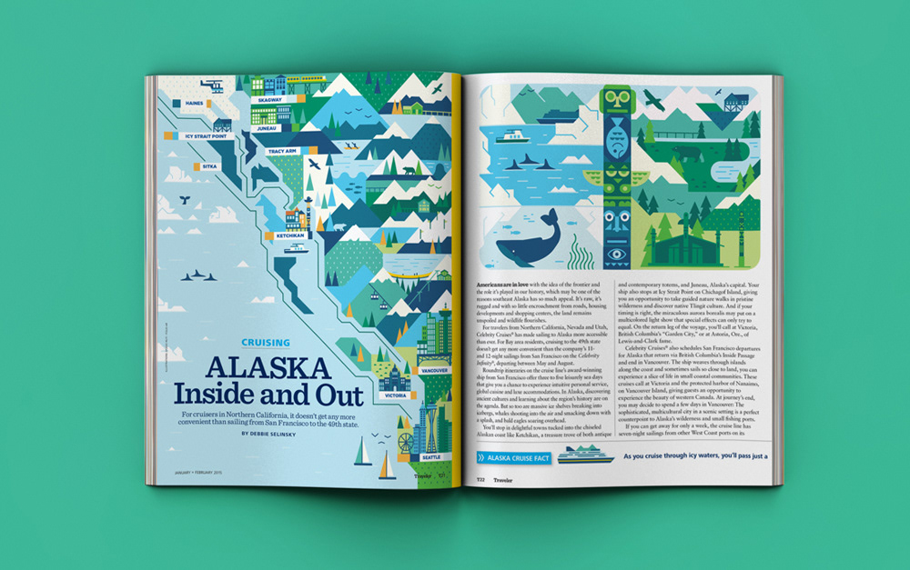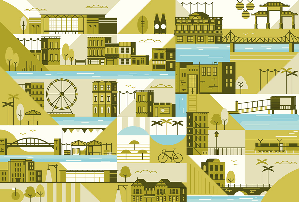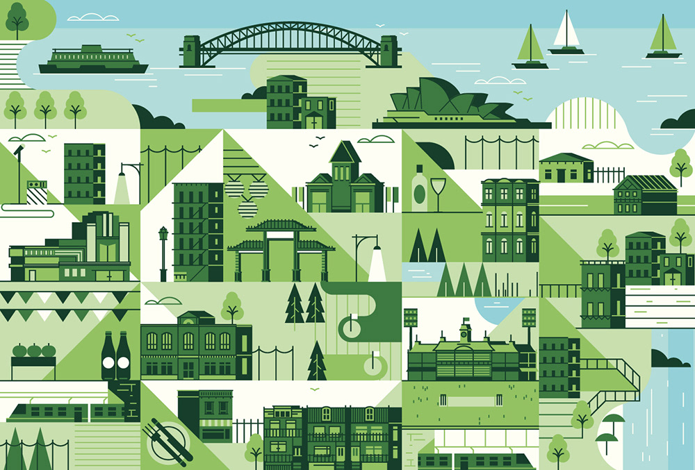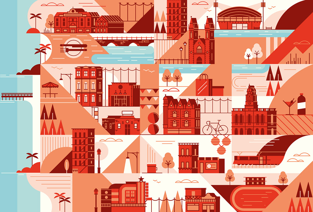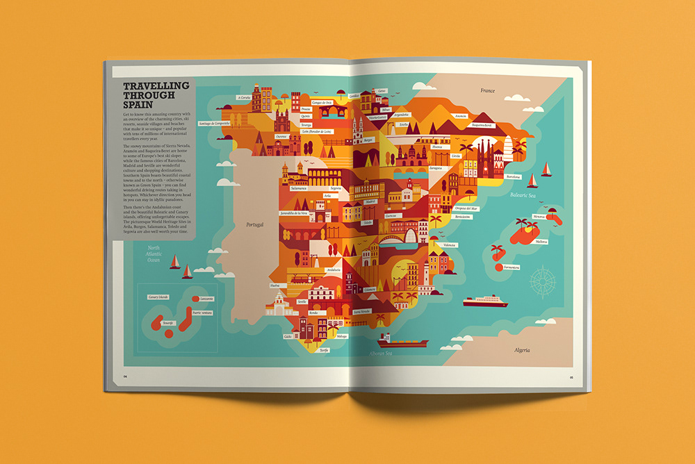 Explore the corners of the earth with our latest selection of editorial maps. Working in a flat, graphic style we depicted various cities and countries from around the world, commissioned by a variety of clients.