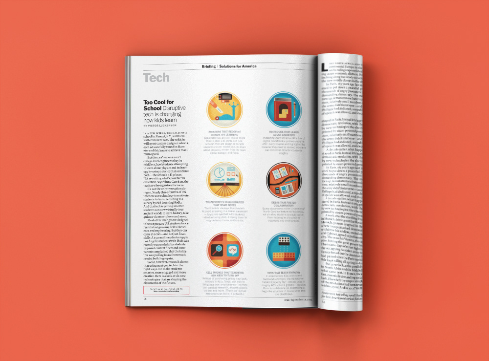 Printers that redefine hands-on learning, Desks that foster collaboration, Textbooks that learn about students