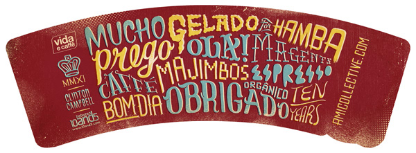 We created a typographic illustration for Vida e Caffé's 10 year anniversary coffee cup sleeve.