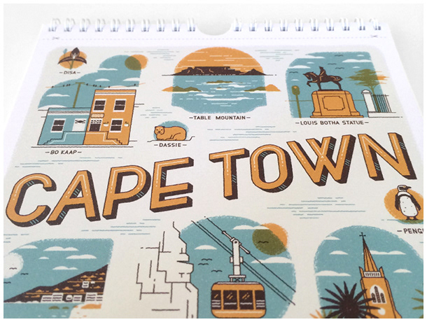 Ask Alice Stationery in Australia invited us to be 1 of 12 artists contributing to the 2014 'Wish You Were Here' calendar. Each artist was asked to portray their hometown, resulting in an illustrated atlas of 12 cities. All proceeds from the calendars and limited edition prints will be donated to the Asylum Seekers Resource Centre.